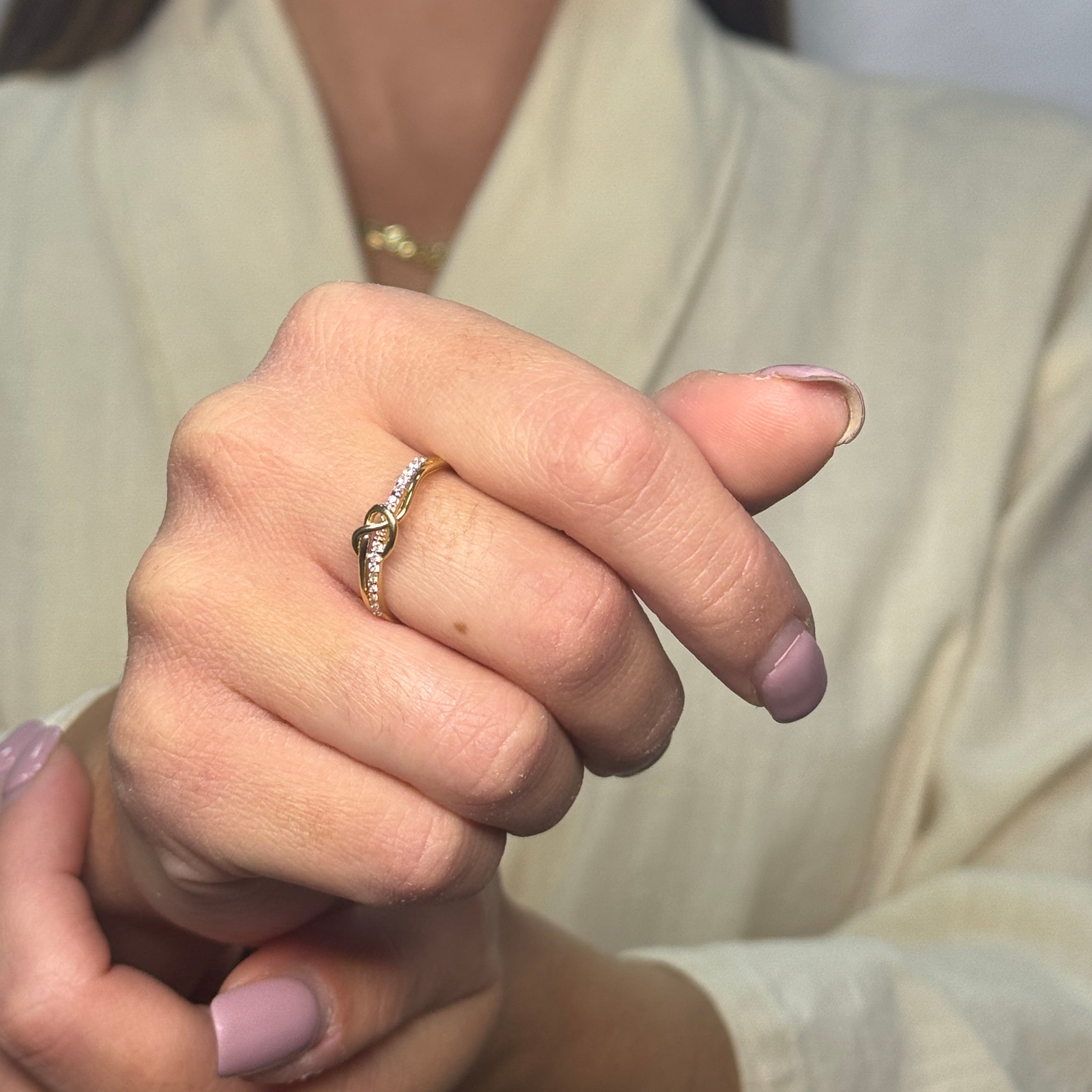 Anello nodo con zirconi oro