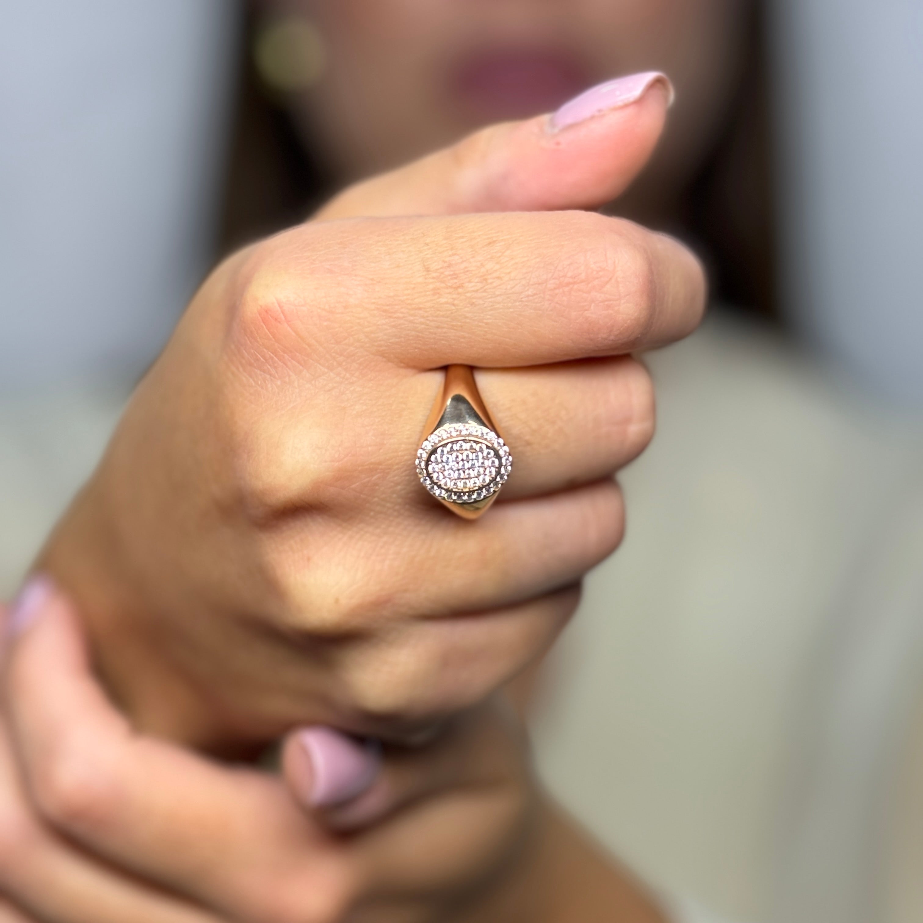 Anello scudo uomo con zirconi oro