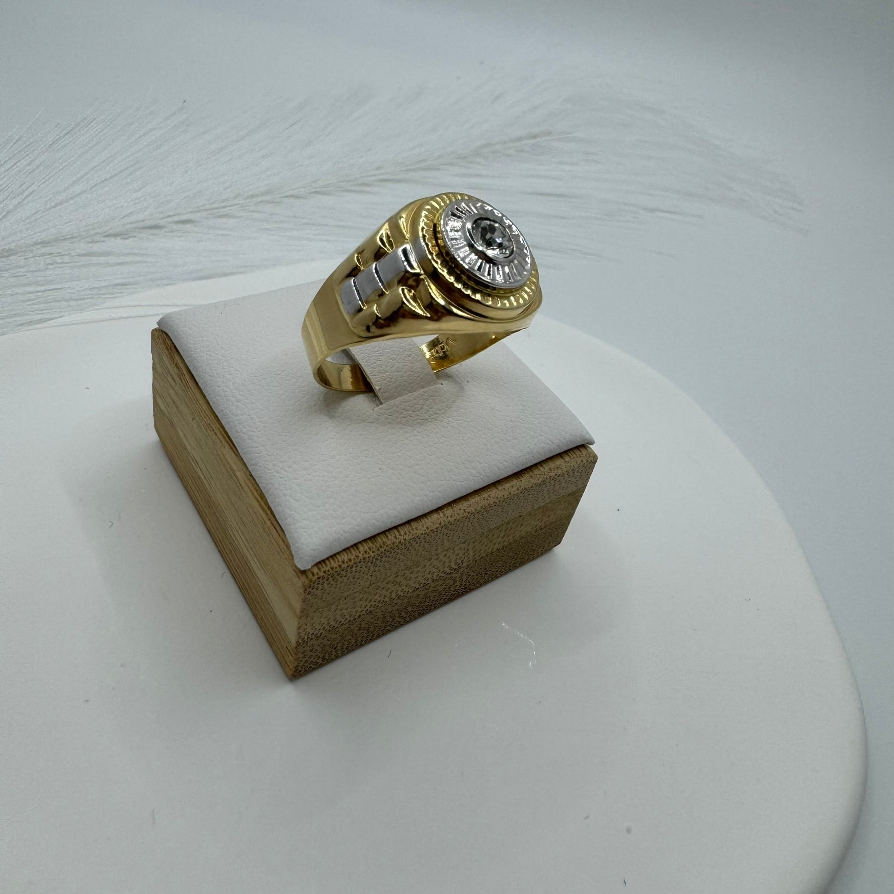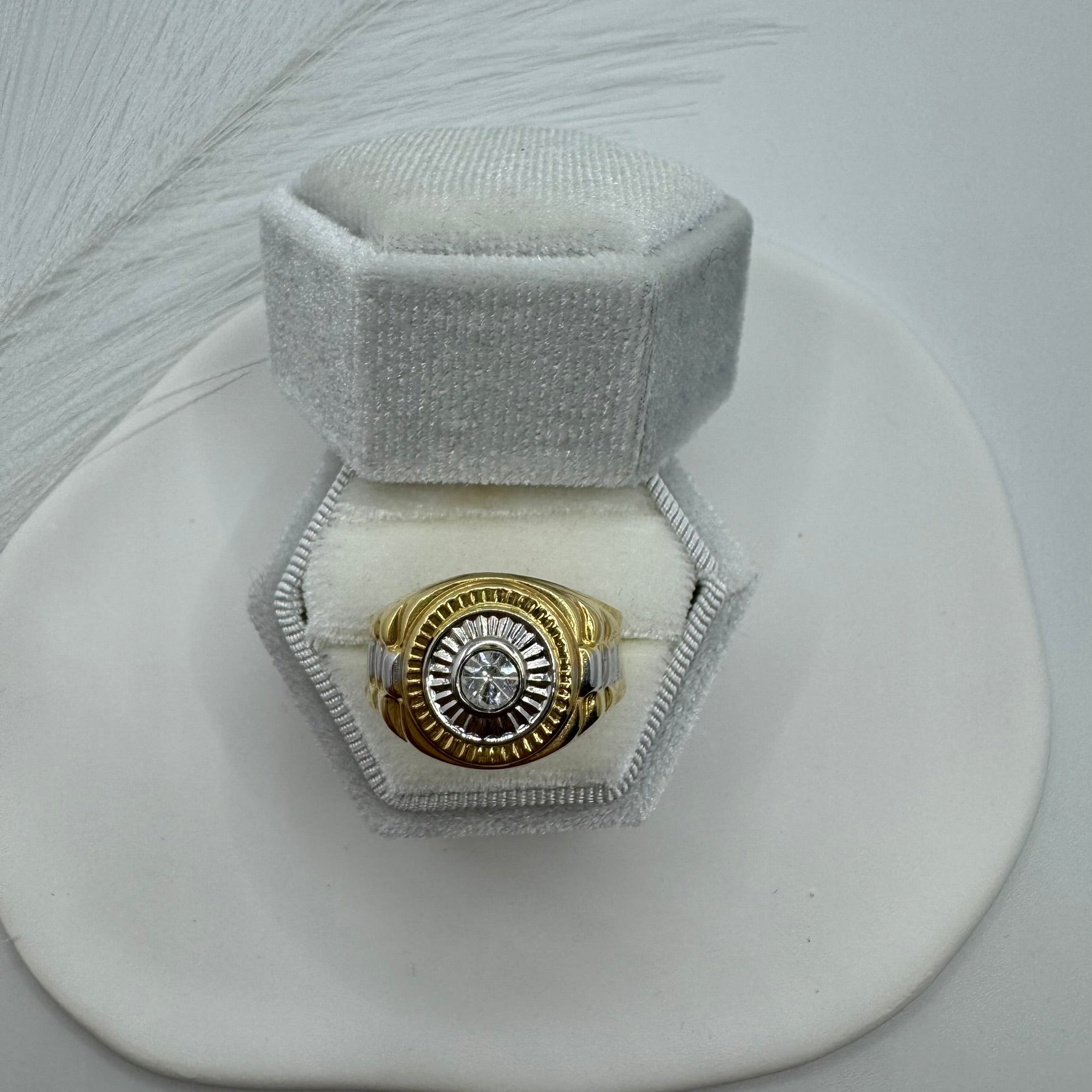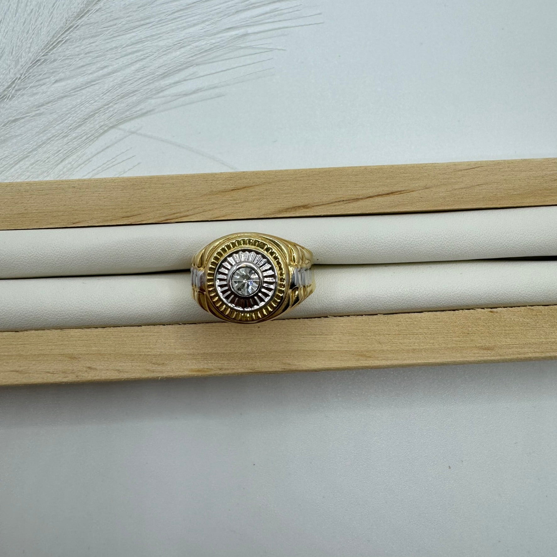 Anello Uomo scudo solitario bicolor oro