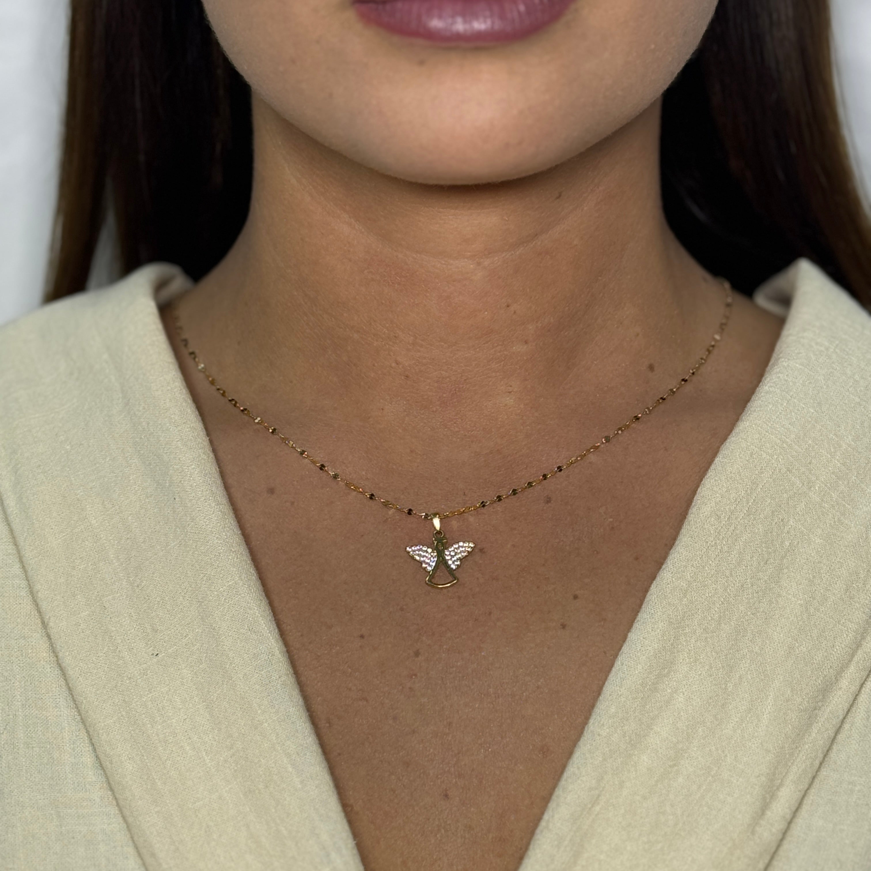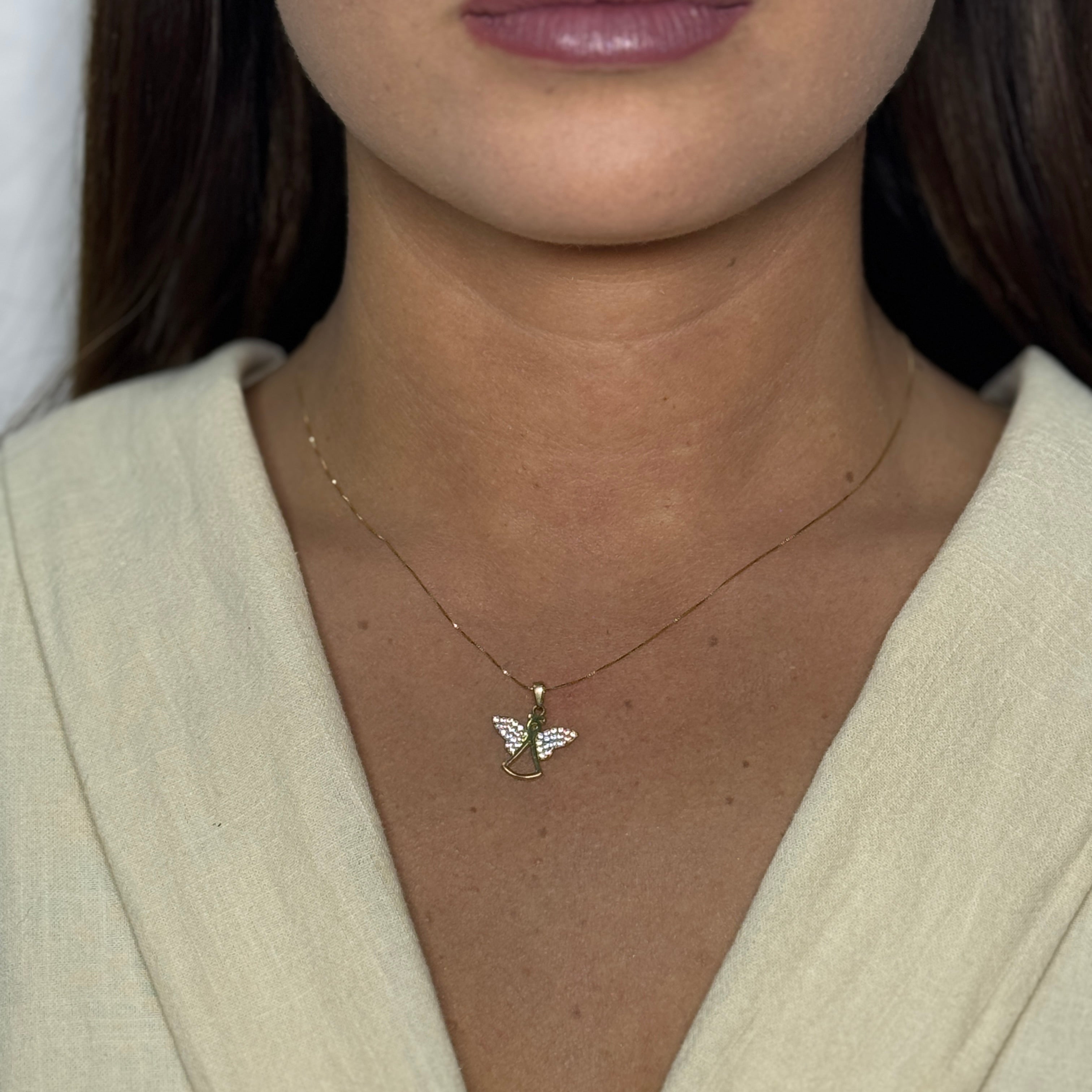 Collana con angelo con zirconi oro