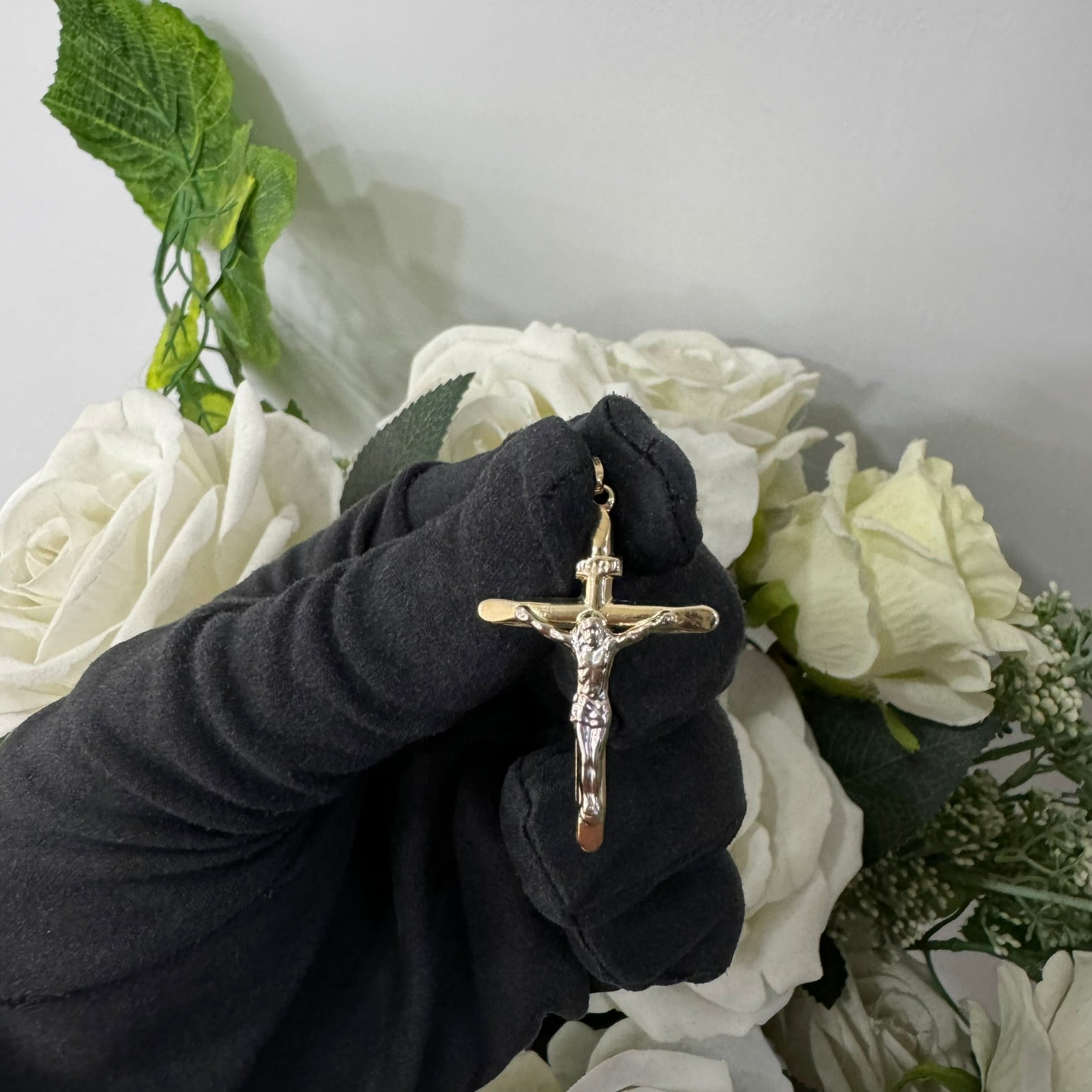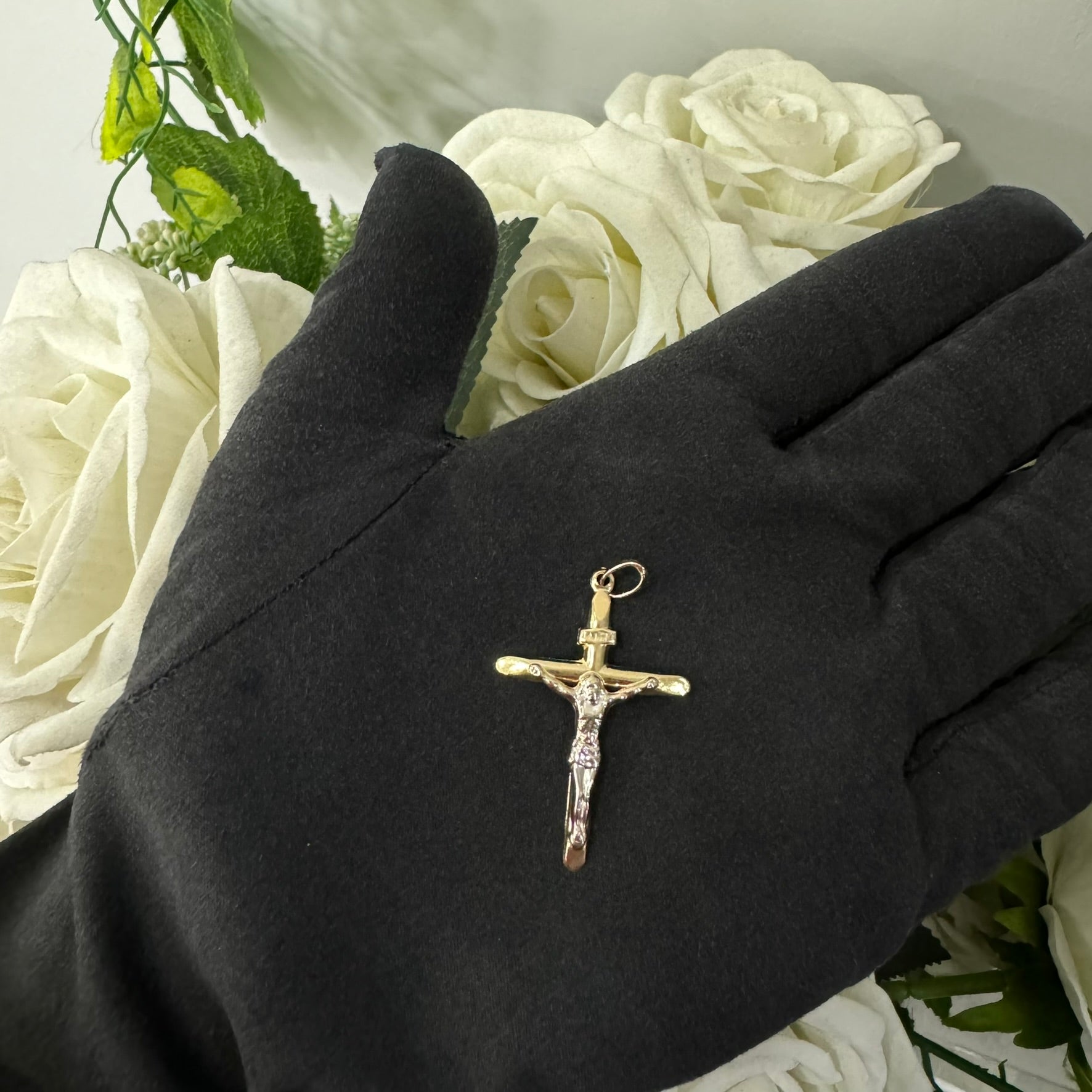 con croce in oro giallo e  bianco