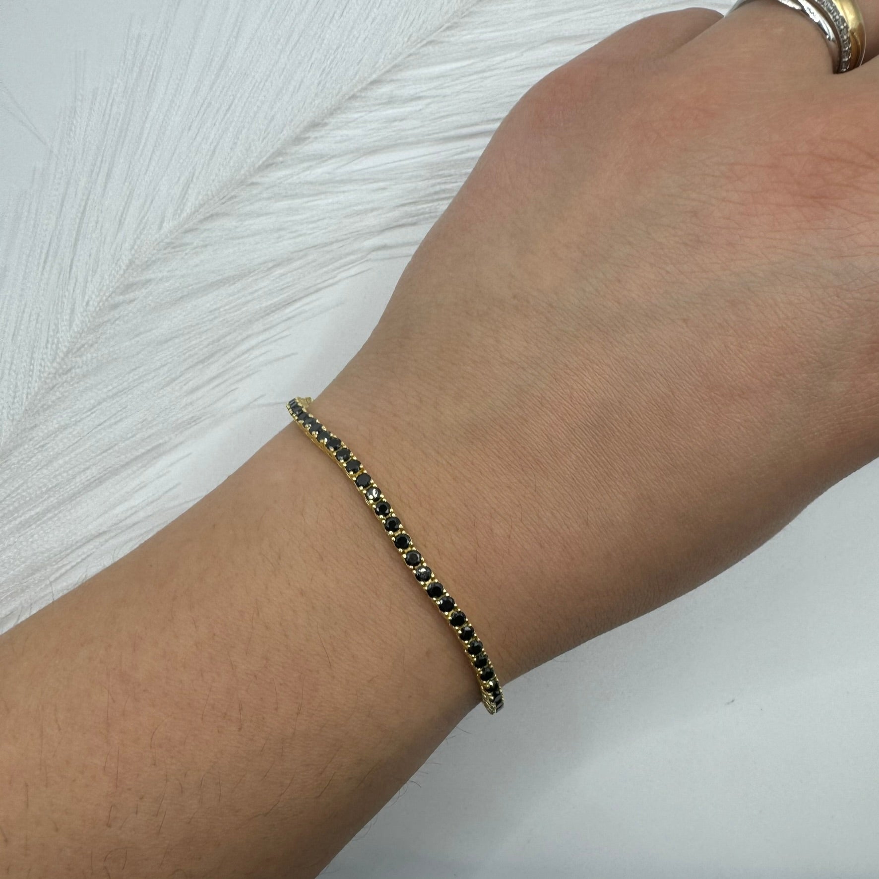 Bracciale tennis argento gold con zirconi neri