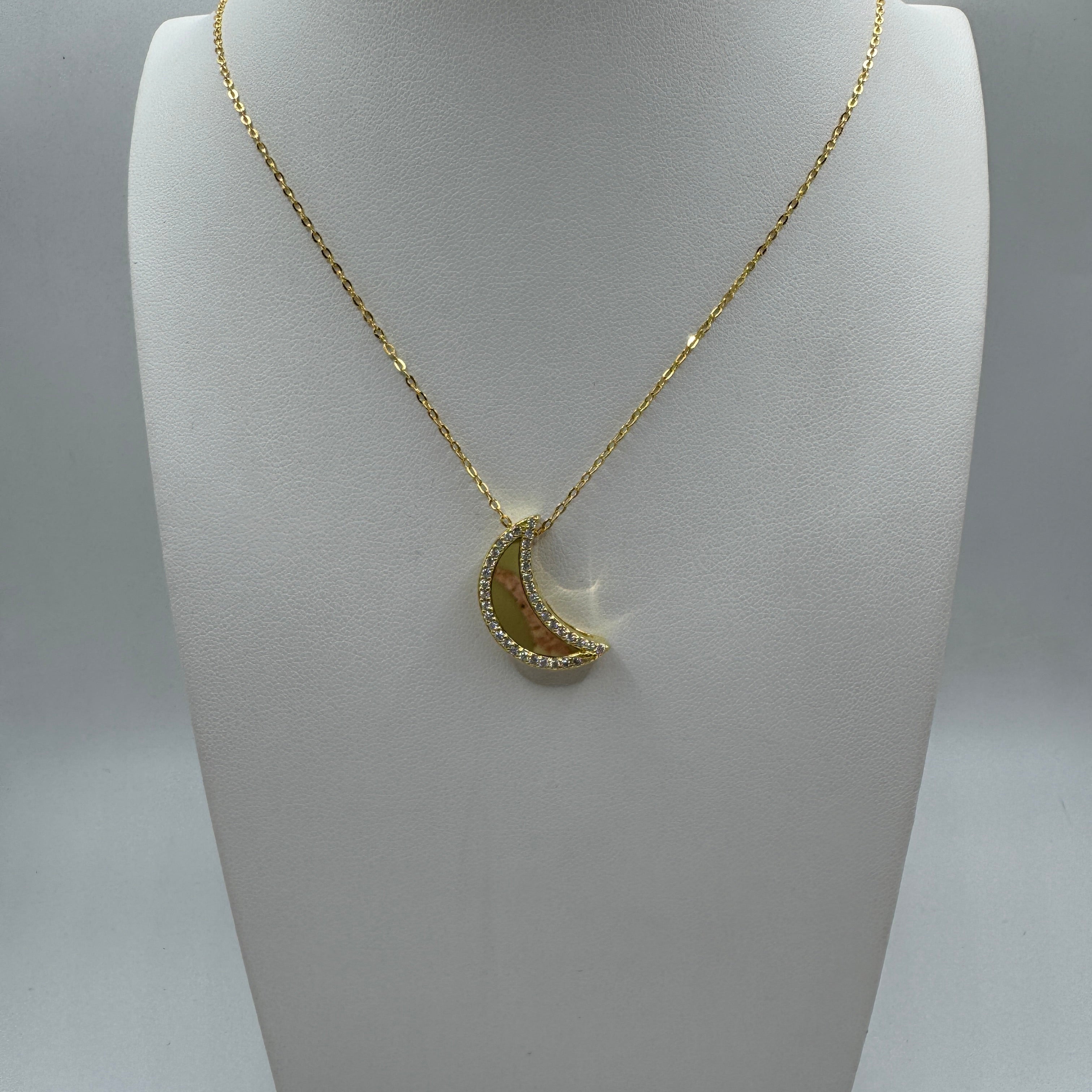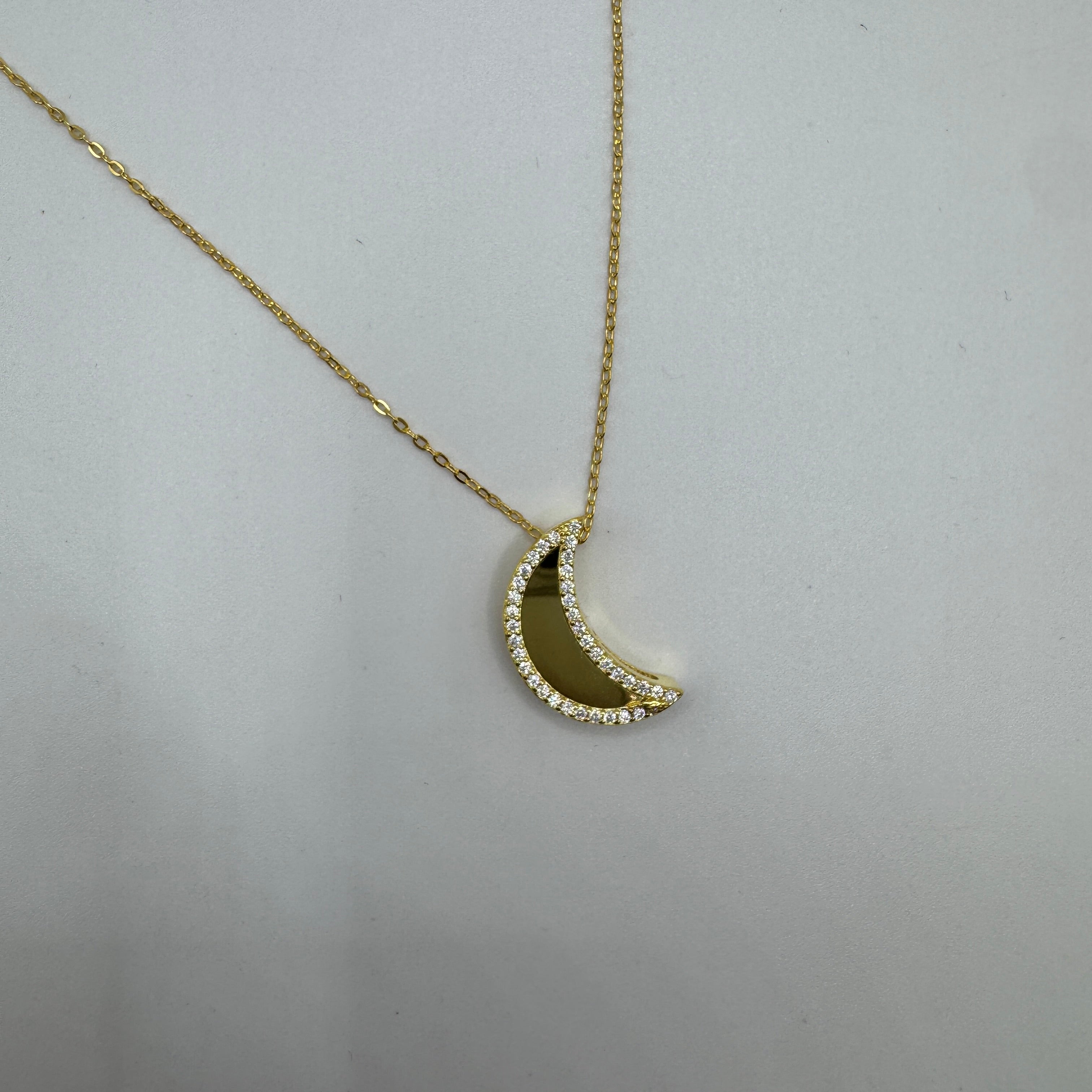 collana con mezza luna con zirconi Argento
