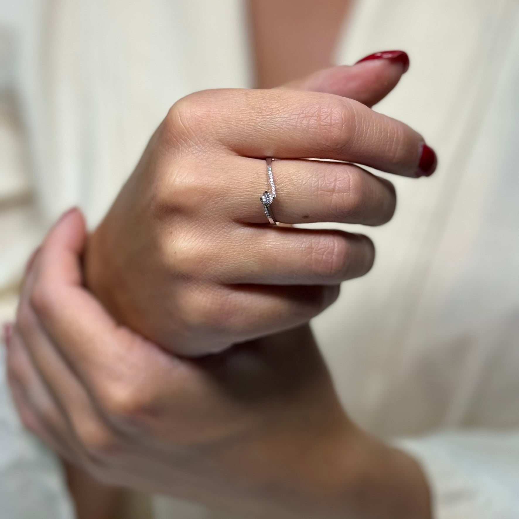 Anello solitario con laterali E-F/ IF-VVS oro e diamante