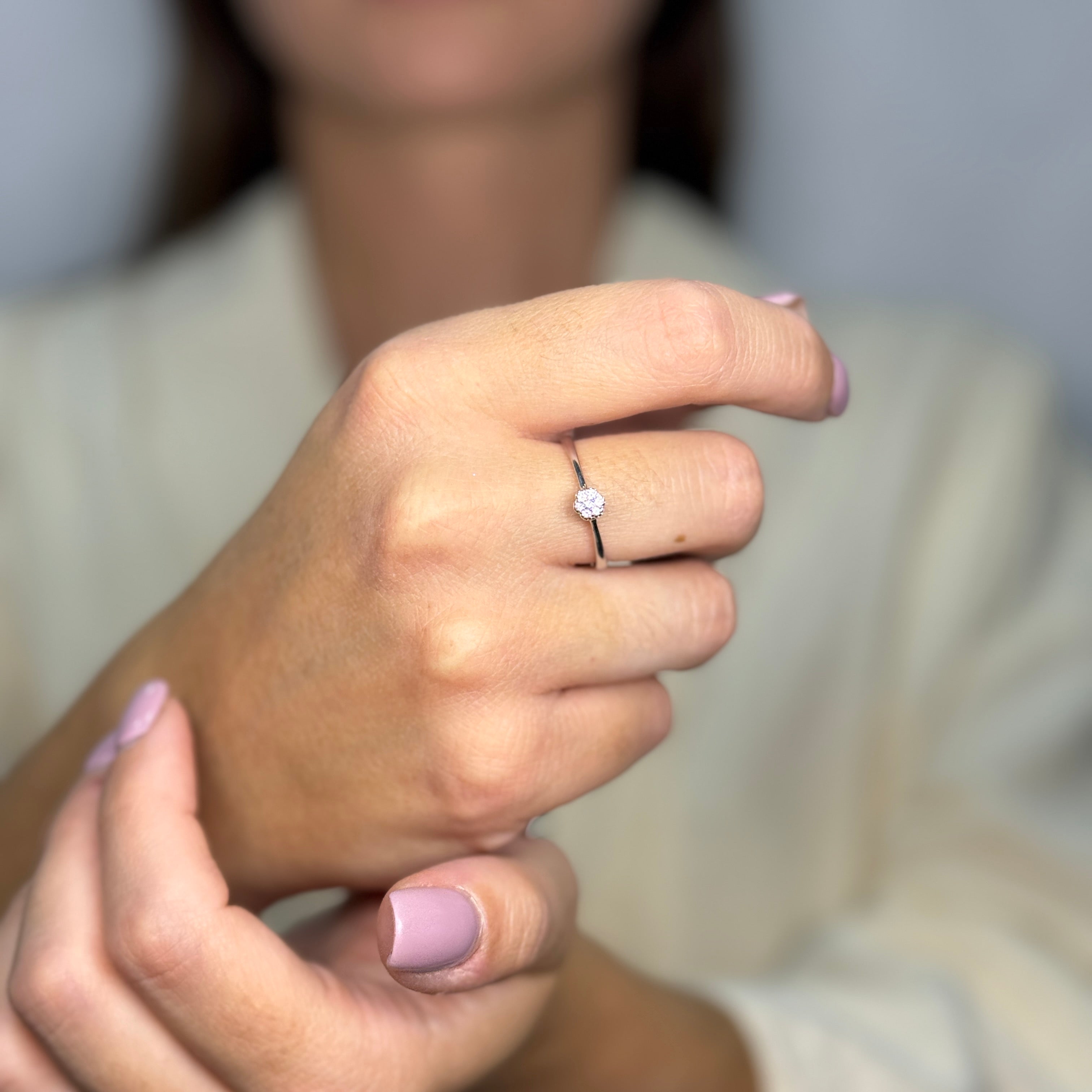 Anello solitario E-F/VVS oro e diamante