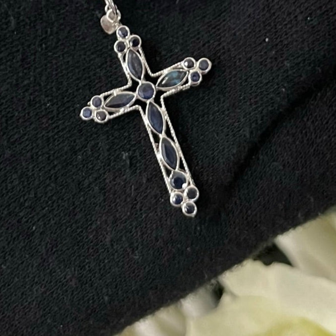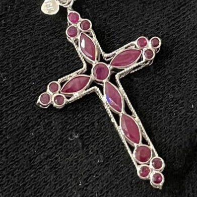 Collana fune con croce zaffiri/rubini oro