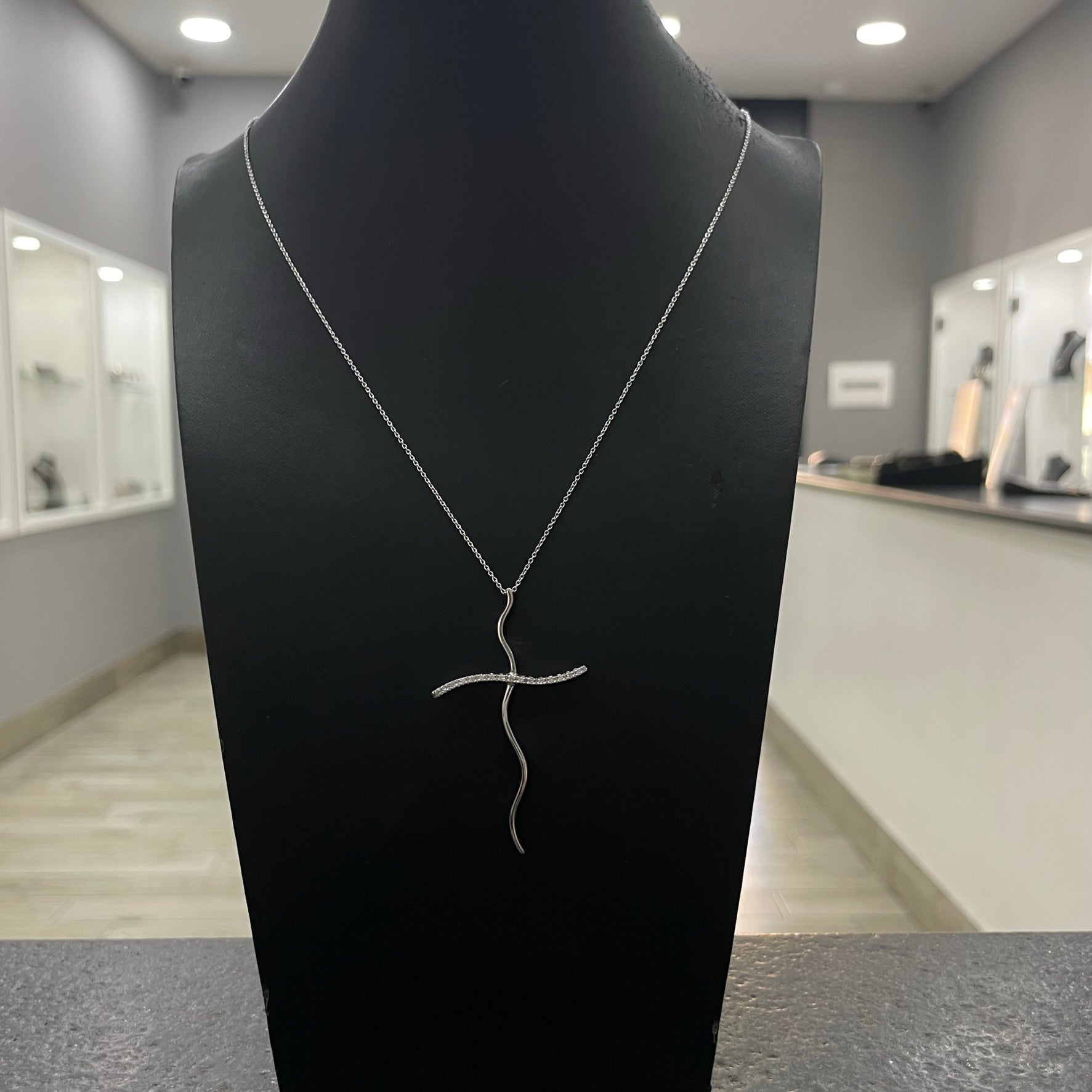 Collana ovalina con croce filiforme oro e diamanti