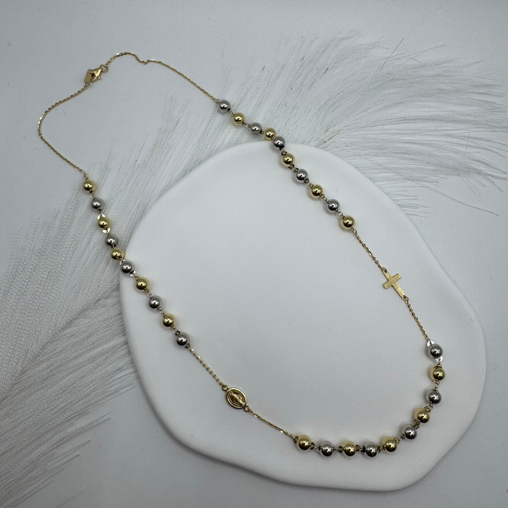 Collana rosario sfere lisce bicolor oro