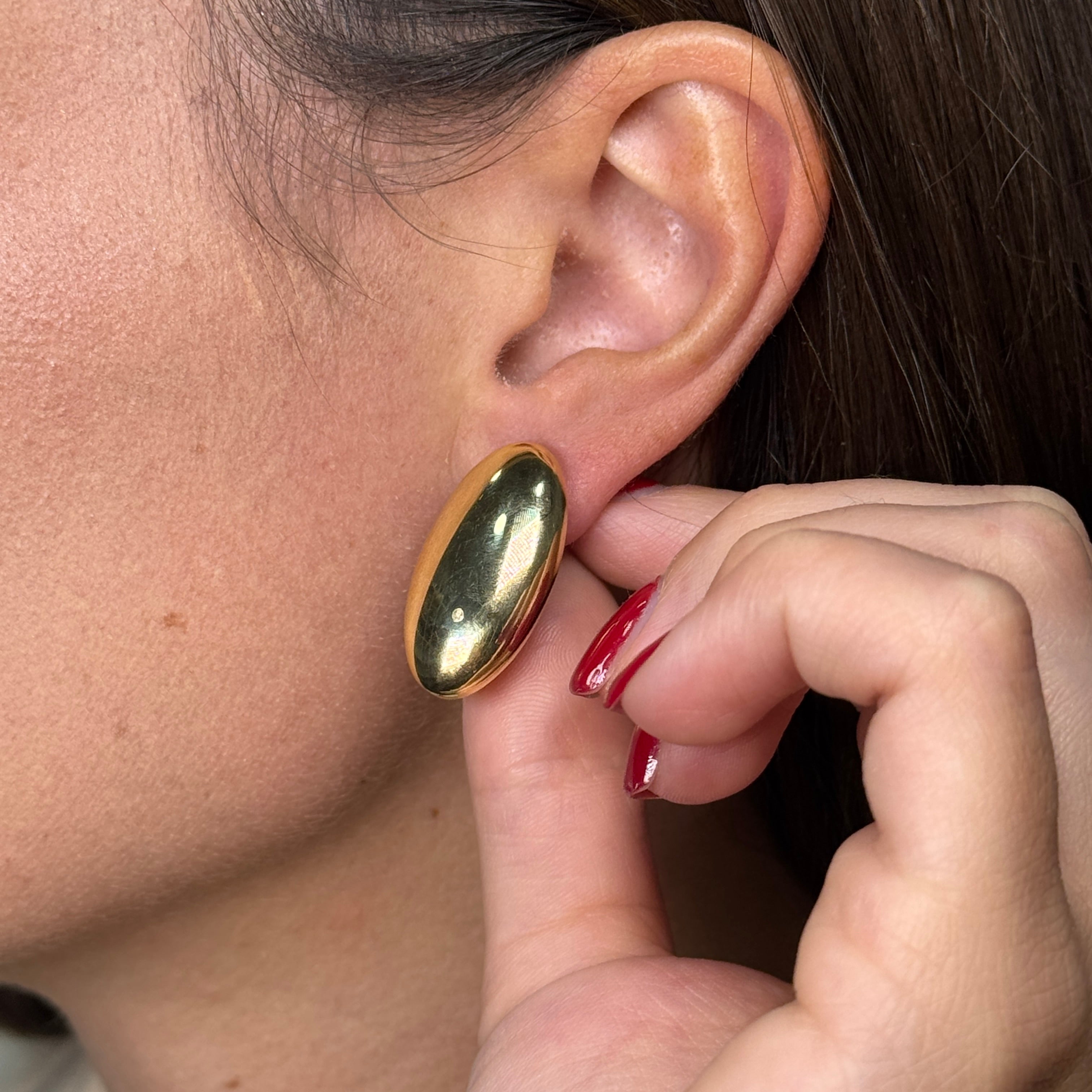 Orecchini bottone ovale bombè oro