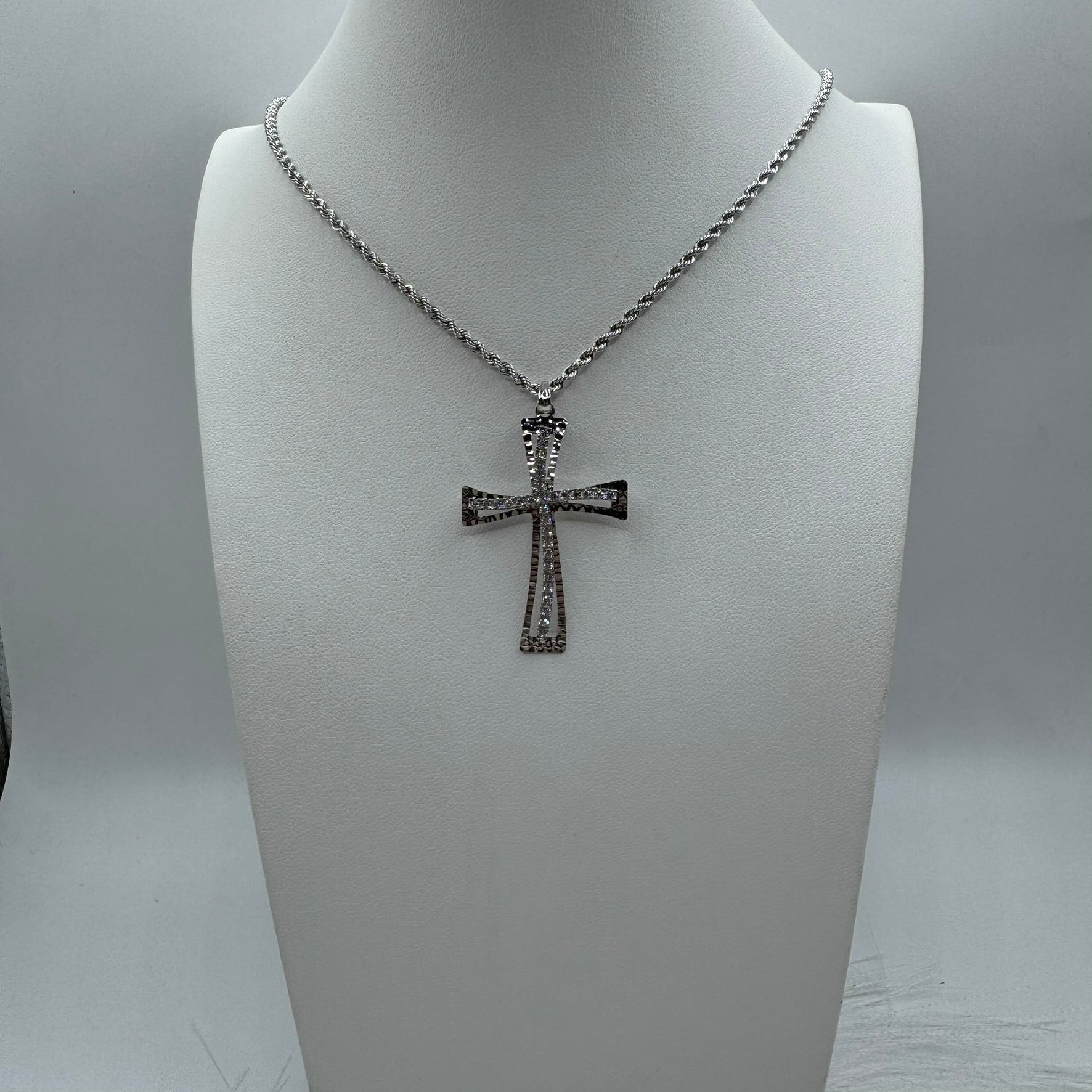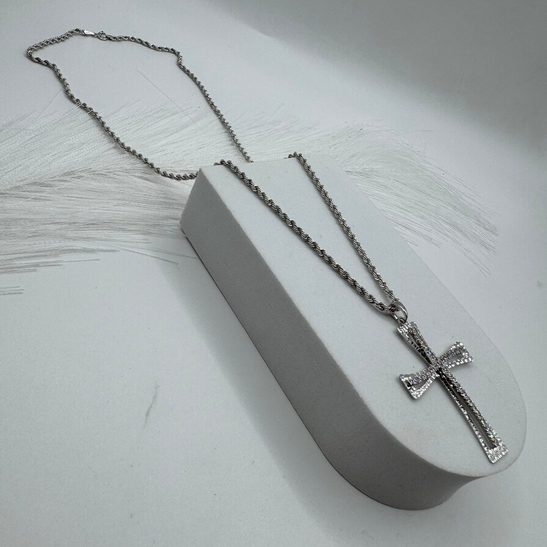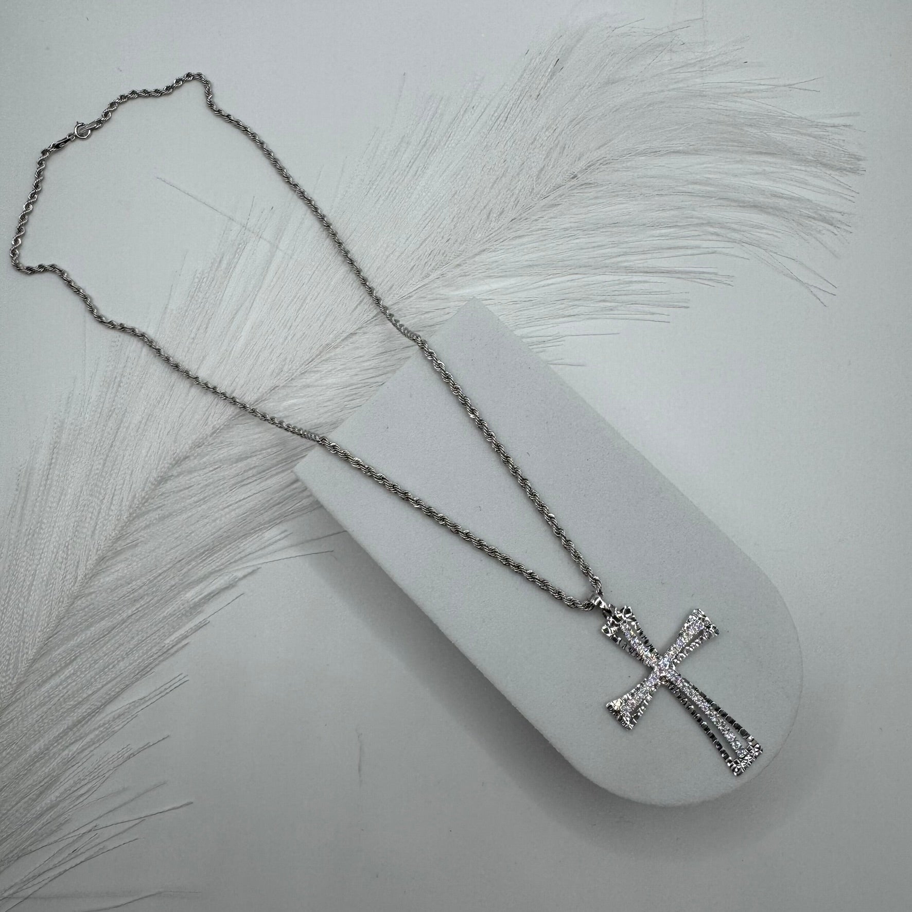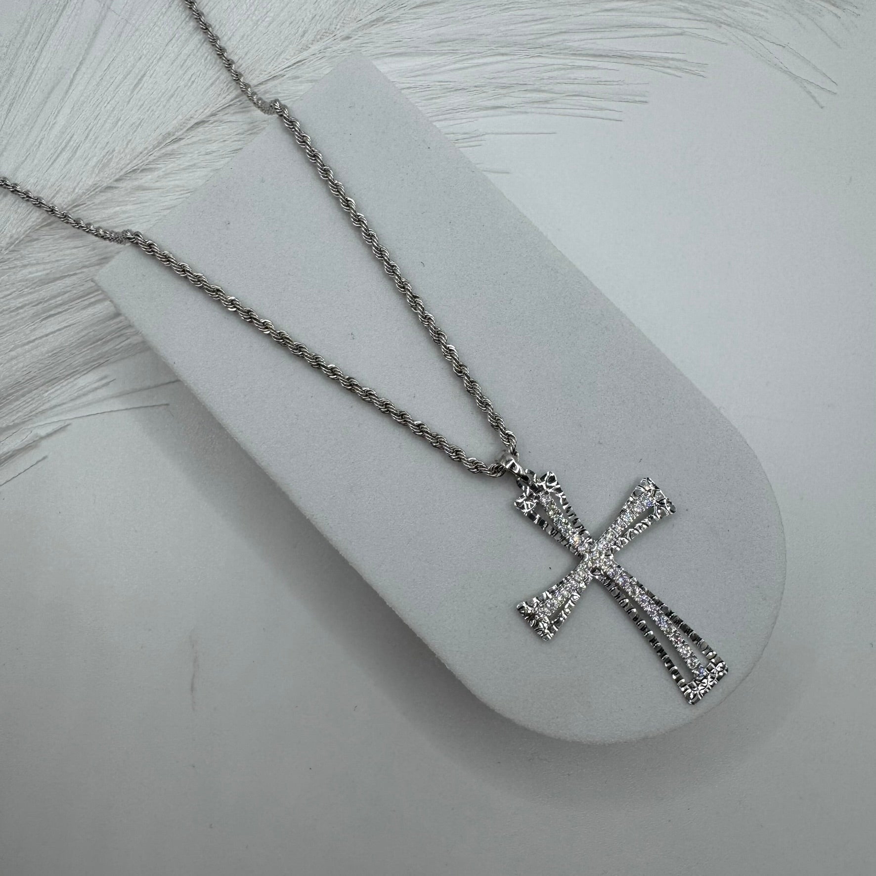 Collana fune con croce zirconi e oro