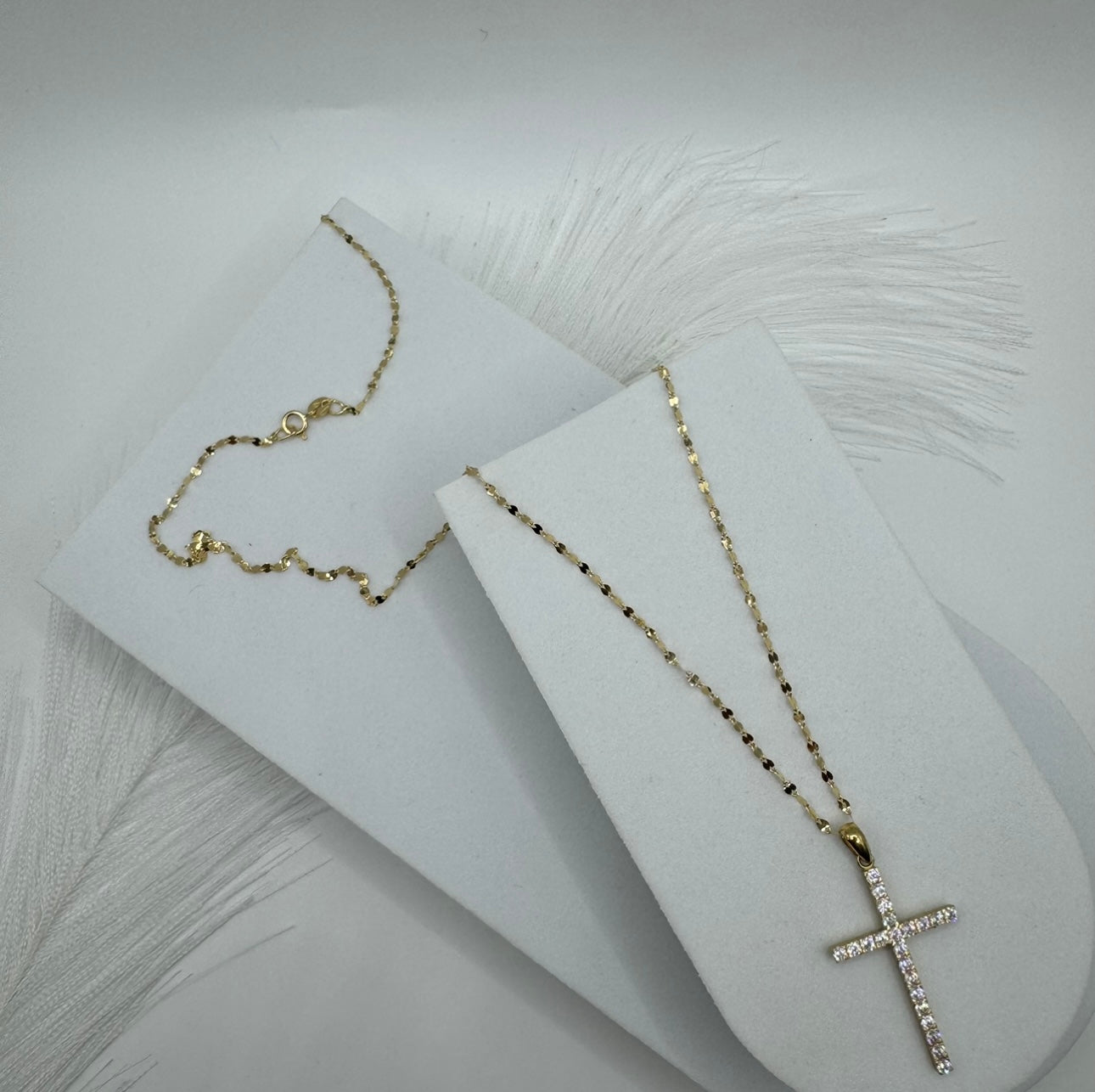 Collana specchiatina con croce zirconata oro