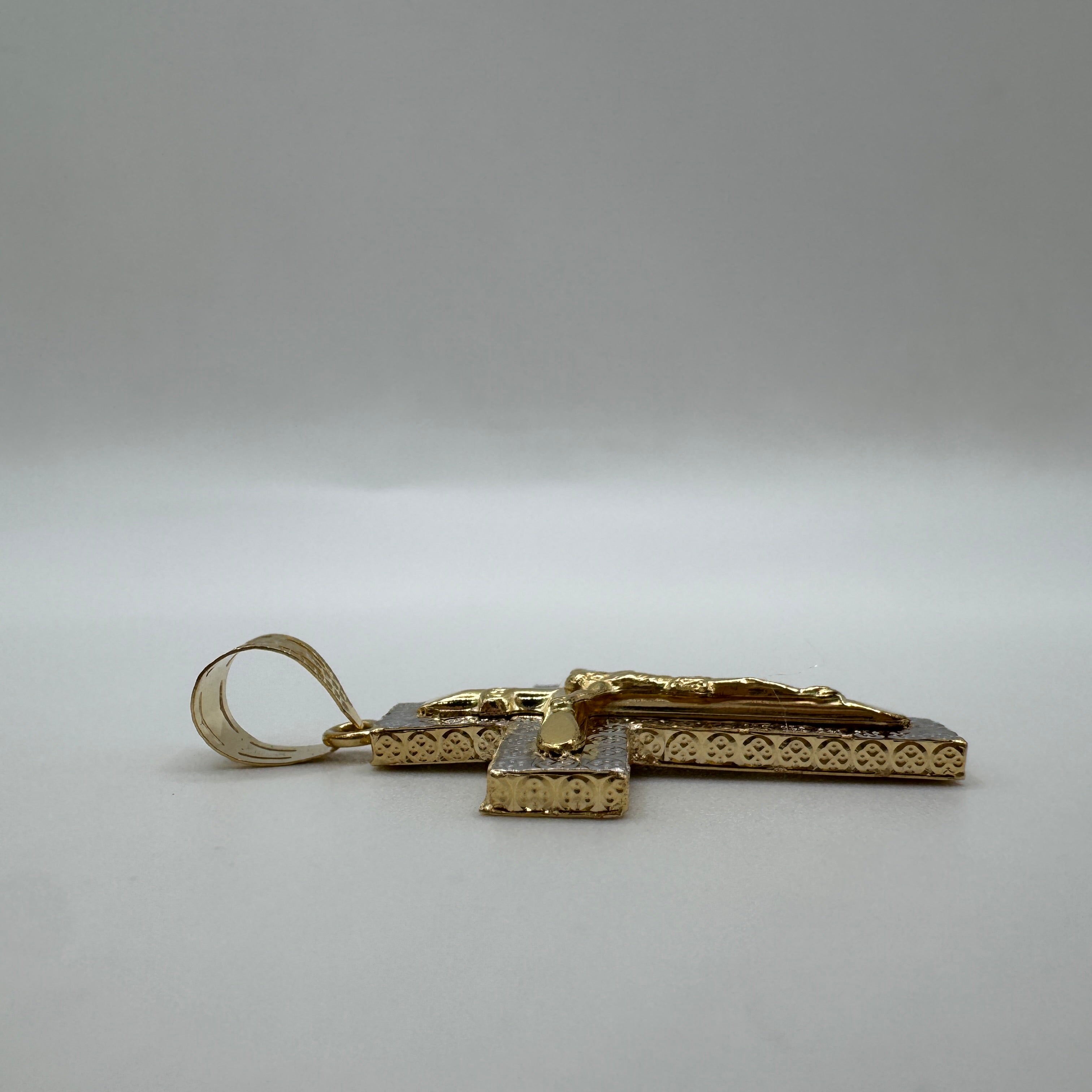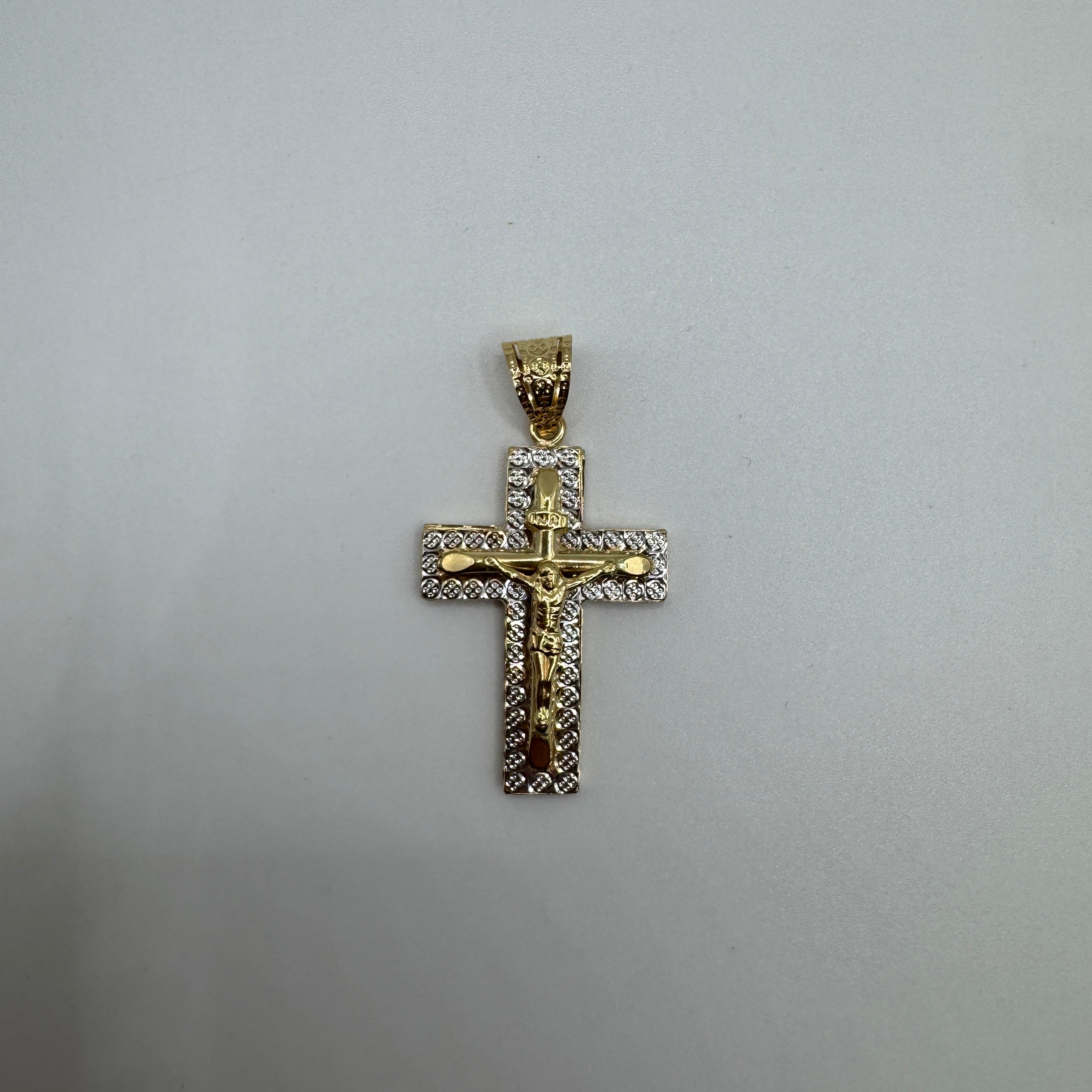 Pendente croce martellata bicolor oro