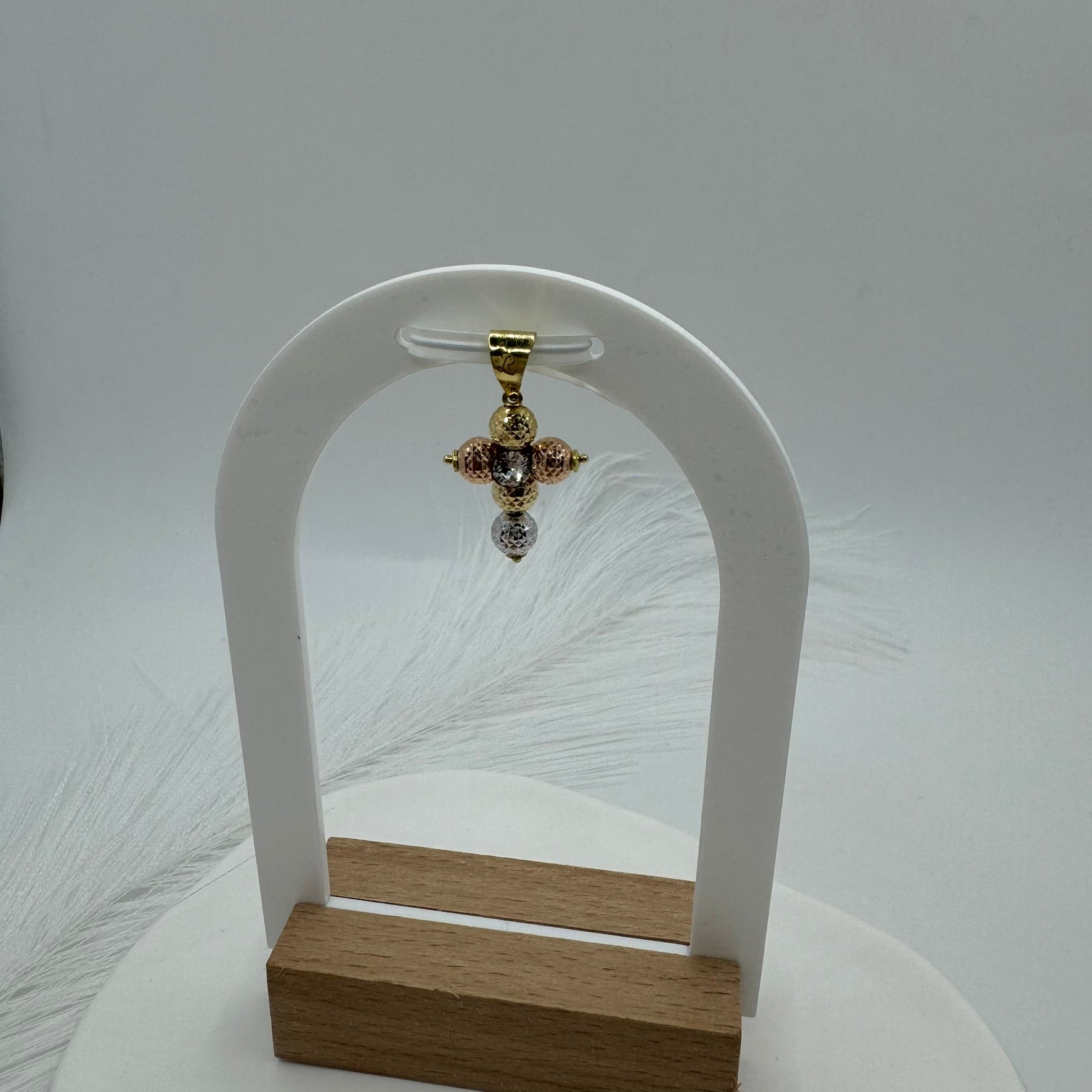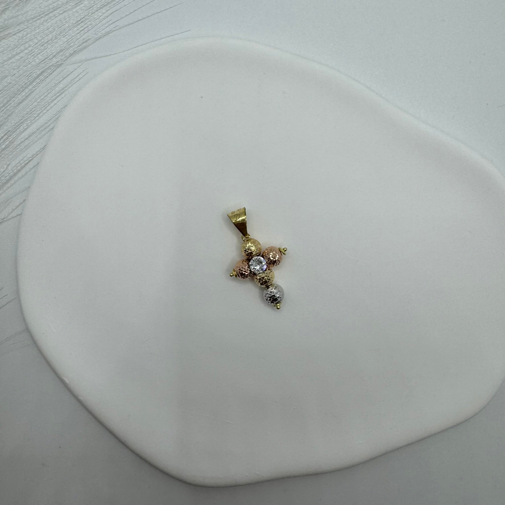 Pendente croce sfere multicolor oro e zirconi