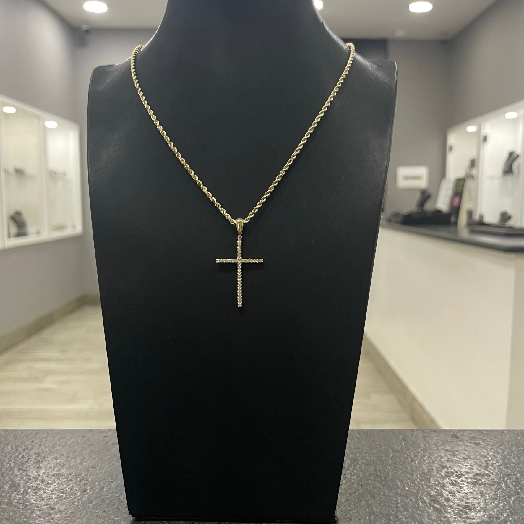 Collana fune con croce esile zirconi e oro