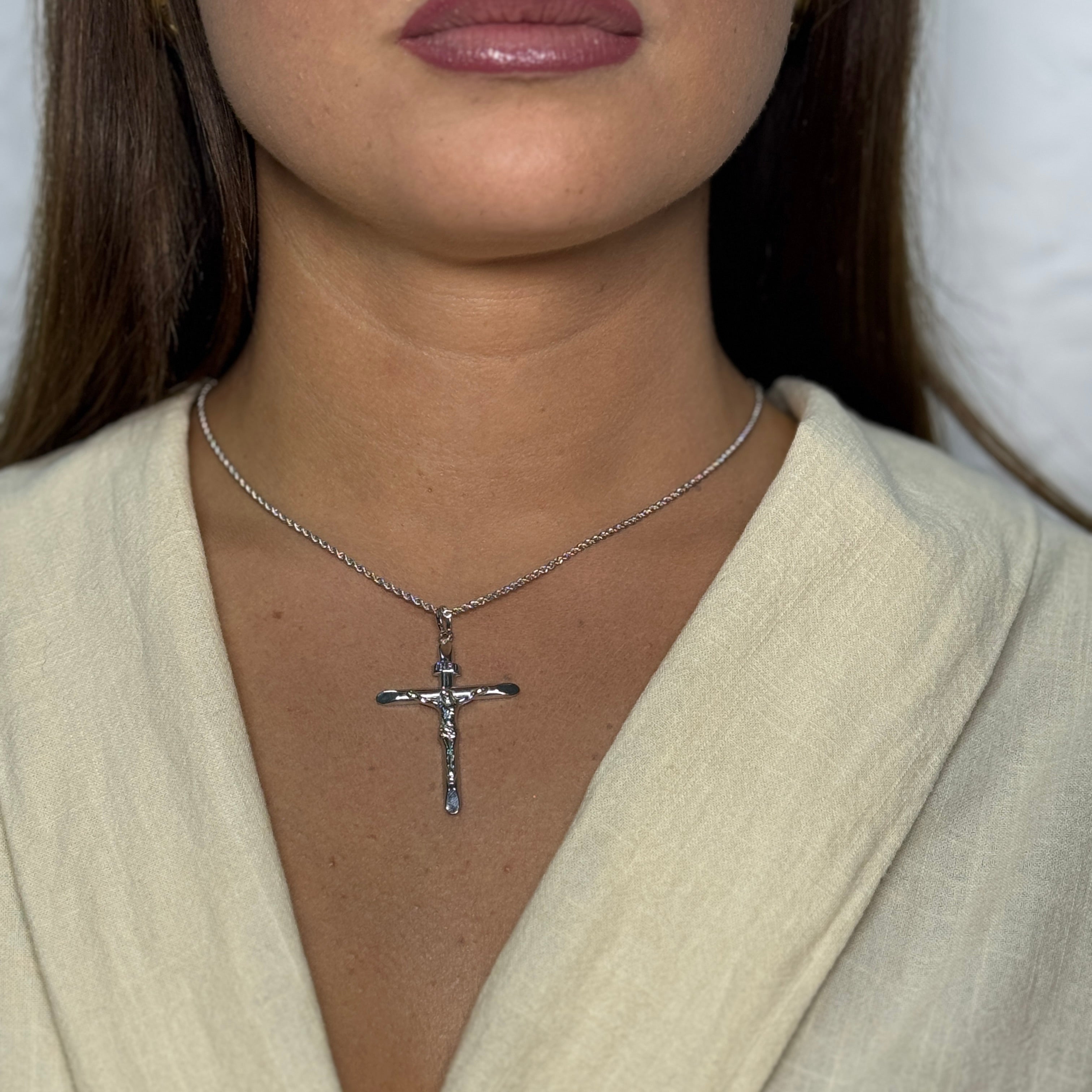 Collana fune con croce oro
